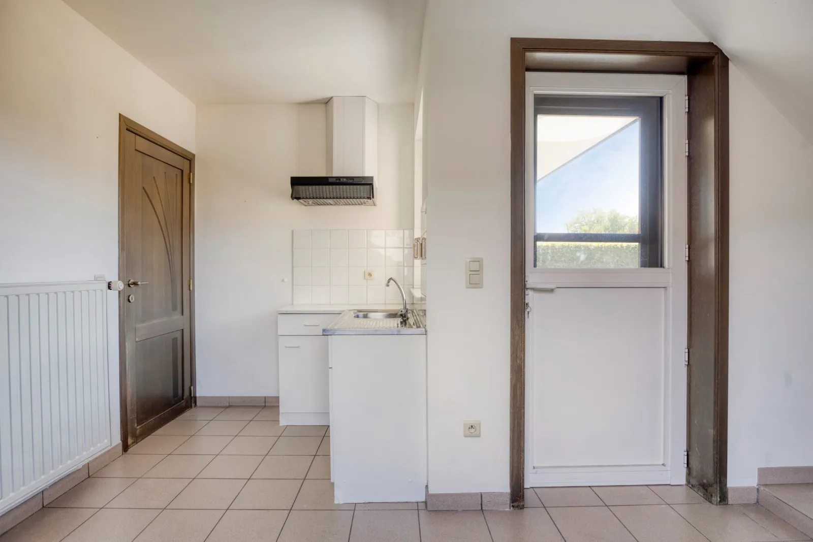- Gelijkvloers: inkomhal, slaapkamer/bureauruimte, gezellige woonkamer, aparte keuken met eetplaats, berging, toilet, wasplaats en garage.