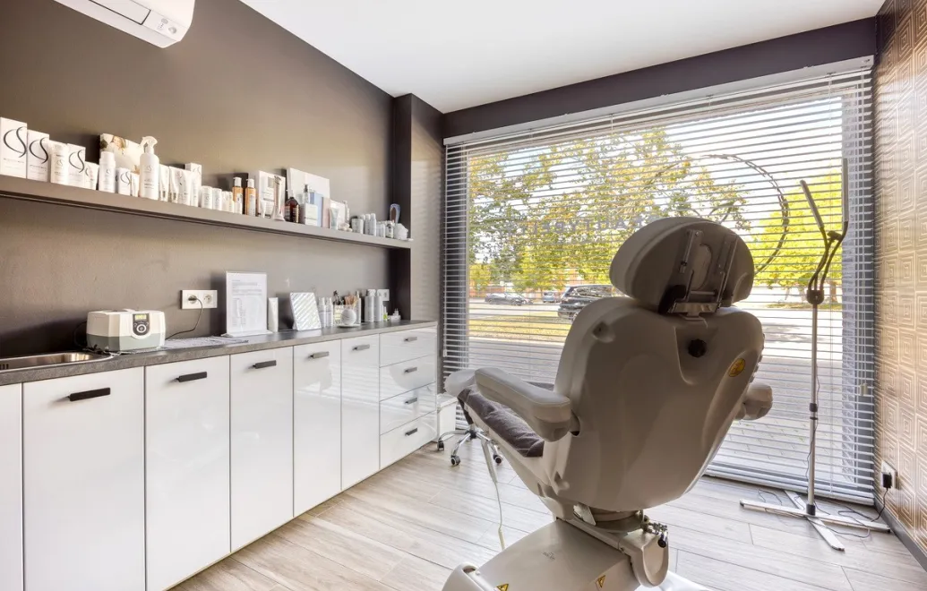 Het gelijkvloers bestaat uit een inkomhal naar de woonst én een apart handelsgedeelte dat vandaag is ingericht als schoonheidssalon met twee aparte kamers. Verder zijn er een ruime berging, een wasplaats, een technische ruimte en een sfeervolle ingerichte bar met zicht op de zonnige tuin. De dubbele garage achteraan – bereikbaar via een aparte inrit – biedt extra comfort en toegang tot de tuin.