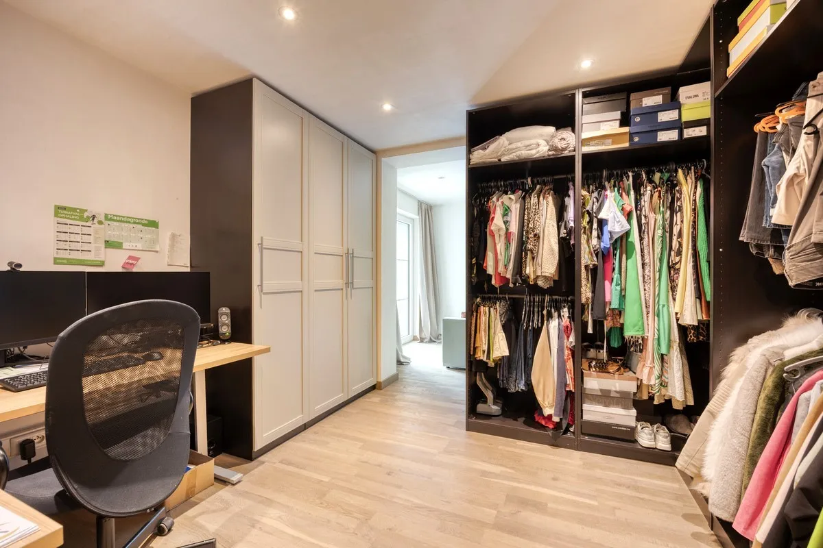 De bovenste verdieping biedt een grote, volledig afgewerkte zolderkamer en bijkomende bergruimte. Perfect als hobbyruimte of extra slaapkamer.