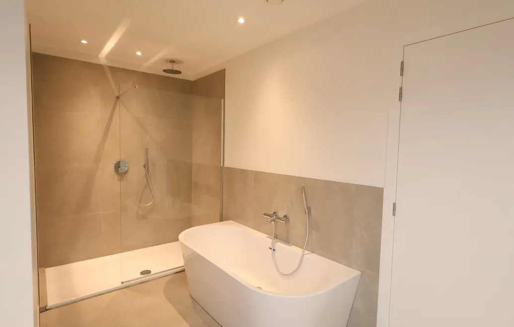 Op de bovenverdieping bevinden zich twee ruime slaapkamers, een dressing/bureau, en een moderne badkamer voorzien van een inloopdouche, dubbele wastafel en een stijlvol ligbad.