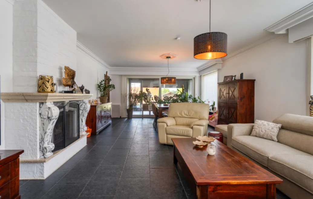 Deze karaktervolle woning uit 1973 werd in 2024 volledig vernieuwd en biedt een ruime, praktische indeling: