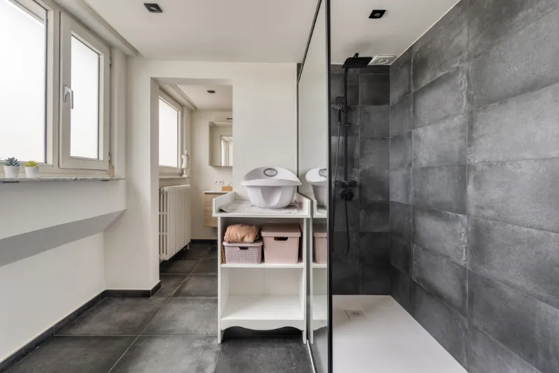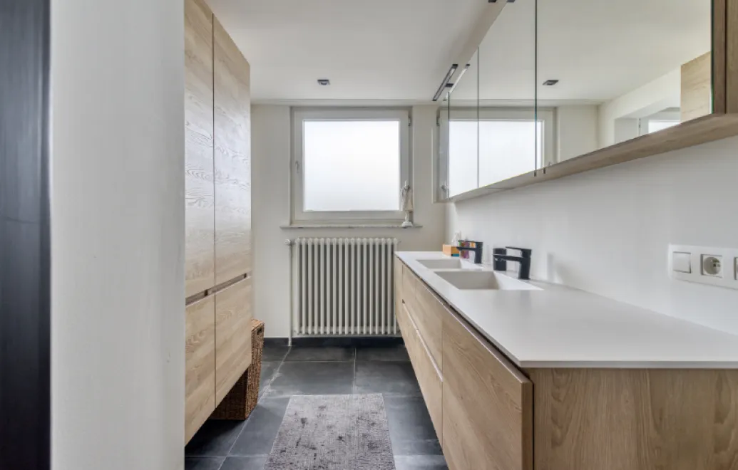 - Eerste verdieping: een nachthal, 2 ruime slaapkamers, aparte dressing, moderne badkamer met douche en dubbele wastafel.