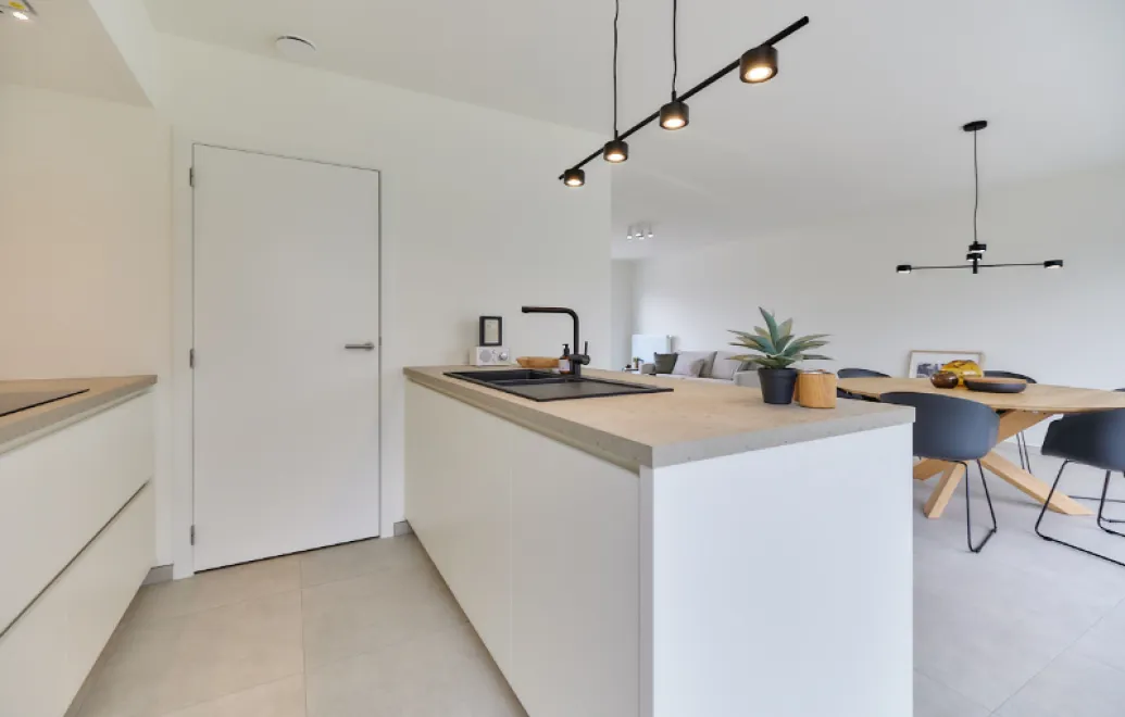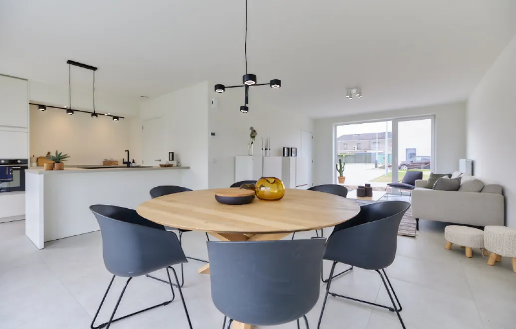 De lichtrijke woningen zijn voorzien van een inkomhal met toilet, lichtrijke leefruimte met open keuken, volledig geïnstalleerde keuken, 2 bergingen, garage, 3 slaapkamers en een ruime badkamer met bad, douche en dubbel lavabomeubel. Het badkamermeubel en de keuken kunnen nog gekozen worden naar eigen smaak en wens. .