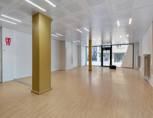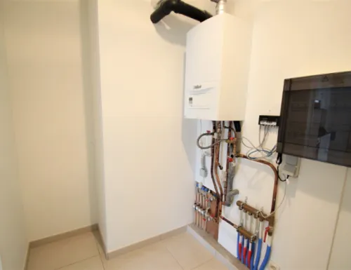 Op het gelijkvloers is er bovendien de mogelijkheid om een garage met automatische poort bij te huren voor 50 euro per maand.