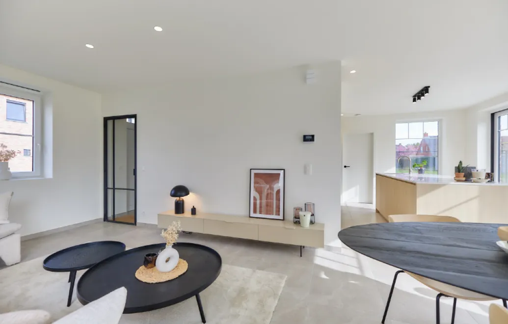De lichtrijke woningen zijn voorzien van een inkomhal met toilet, lichtrijke leefruimte met open keuken, volledig geïnstalleerde keuken, 2 bergingen, 3 slaapkamers en een ruime badkamer met bad, douche en dubbel lavabomeubel. Het badkamermeubel en de keuken kunnen nog gekozen worden naar eigen smaak en wens.