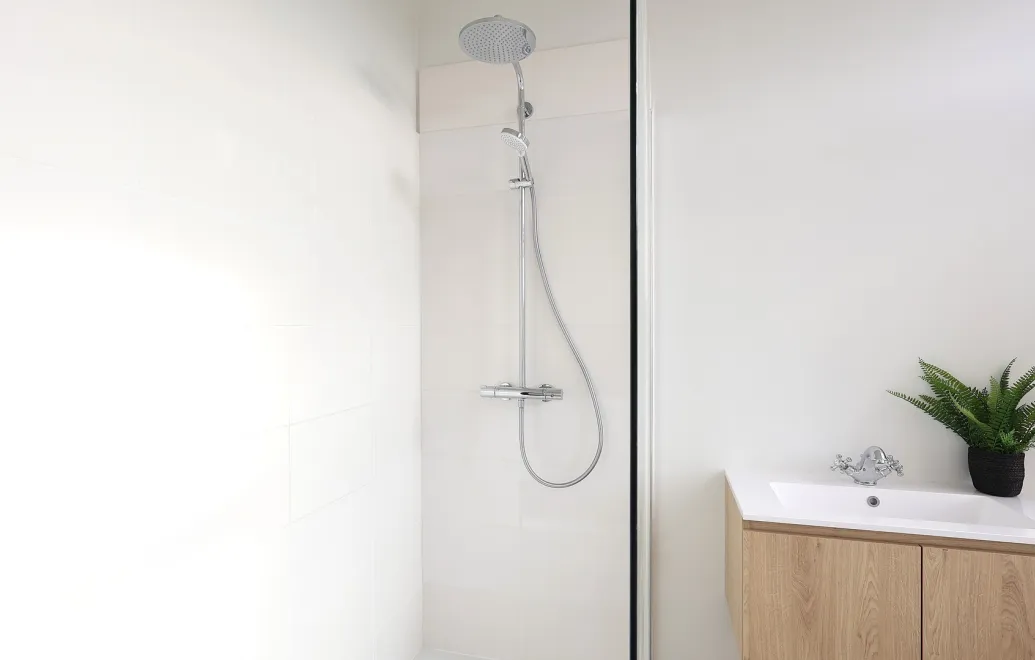 Op de eerste verdieping bevinden zich drie ruime slaapkamers en twee badkamers – één met douche en één met ligbad – alsook een apart toilet. Via een vaste trap bereik je de ruime zolder, die extra opbergmogelijkheden biedt.