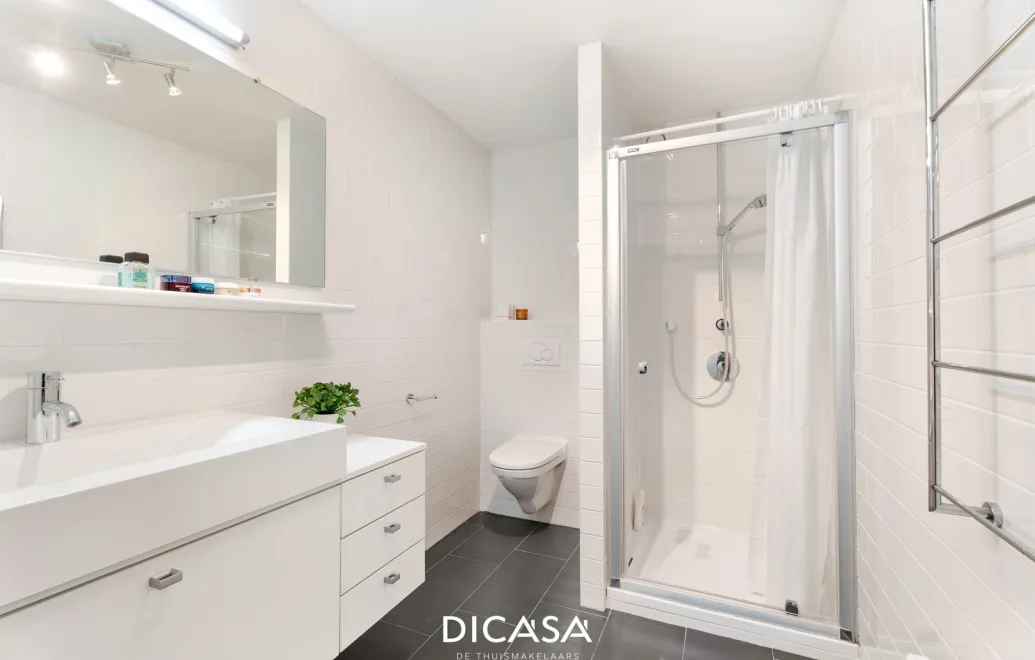 - Ruime badkamer met toilet en douche en ingemaakte kasten.