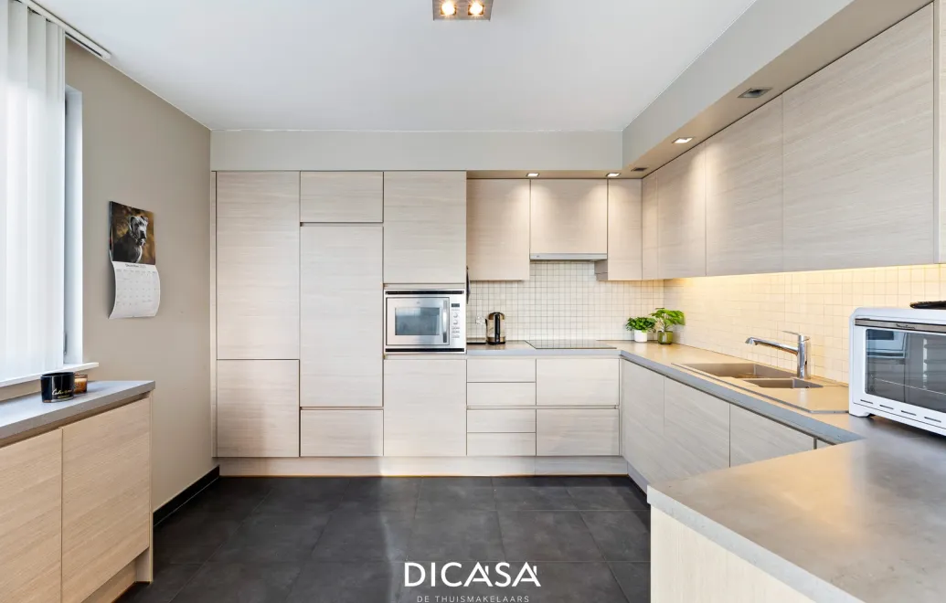 De keuken is volledig geïnstalleerd en voorzien van inbouwtoestellen. Voor extra comfort is er een airco aanwezig, die de warmte in de zomer buiten houdt.