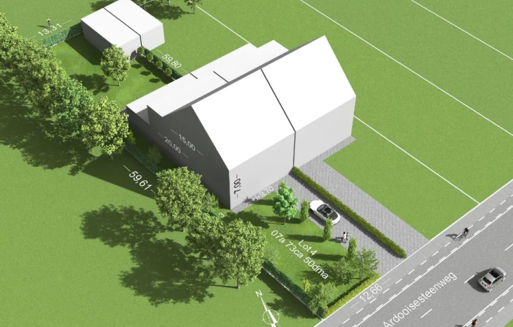 - Voorbouwlijn ligt op 25m uit de as van de Ardooisesteenweg