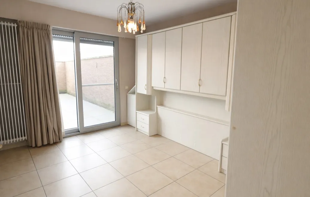 Het appartement beschikt over een ruim terras achterin met tuinhuis die heel wat opbergmogelijkheid voorziet.