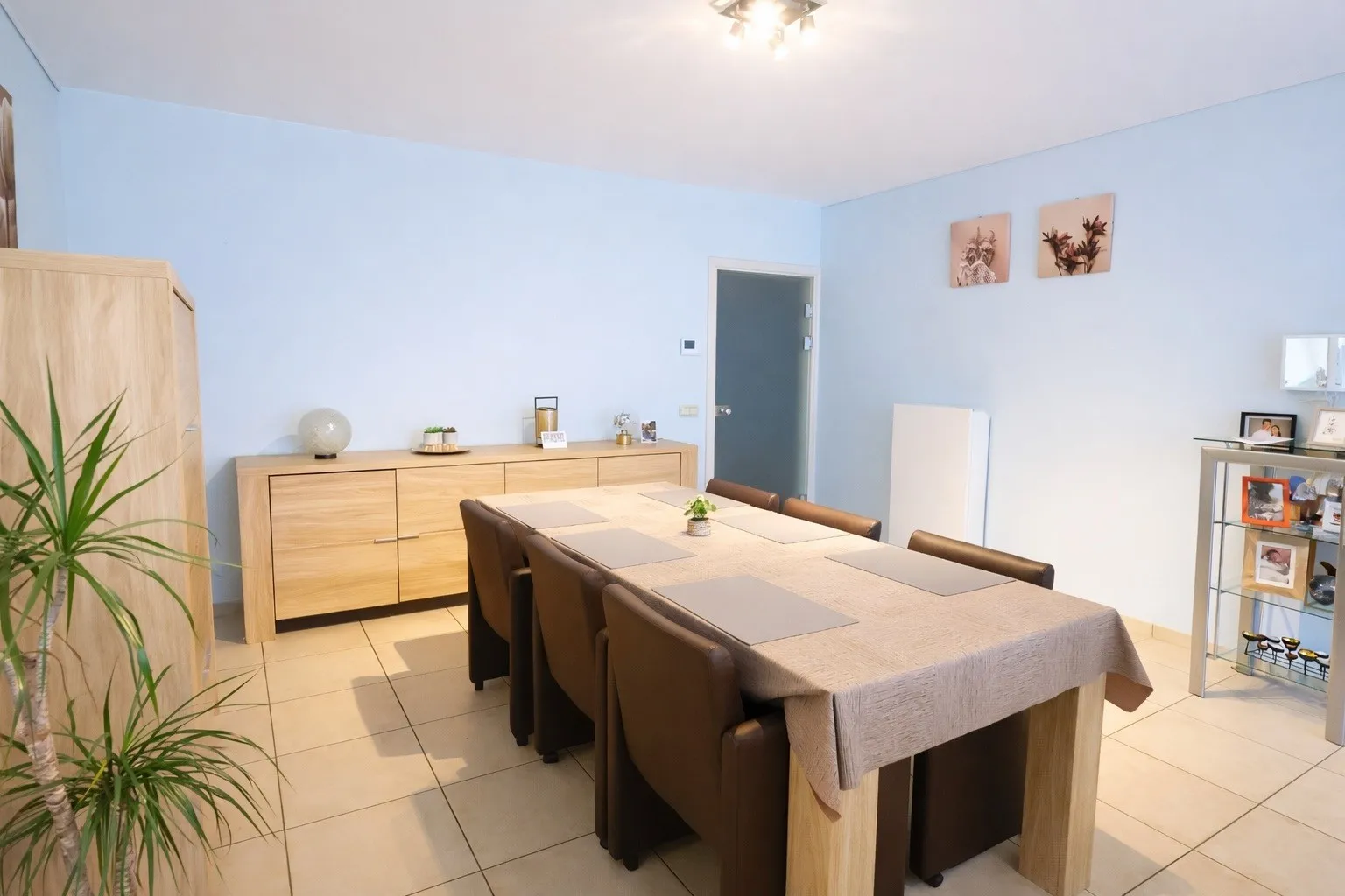 Het appartement bevindt zich op de eerste verdieping en bestaat uit een inkomhal, ruime woonkamer met eetplaats, goed uitgeruste keuken, aparte berging, wasplaats, 2 slaapkamers, dressing, badkamer en zeer ruim zonneterras met tuinhuis.
